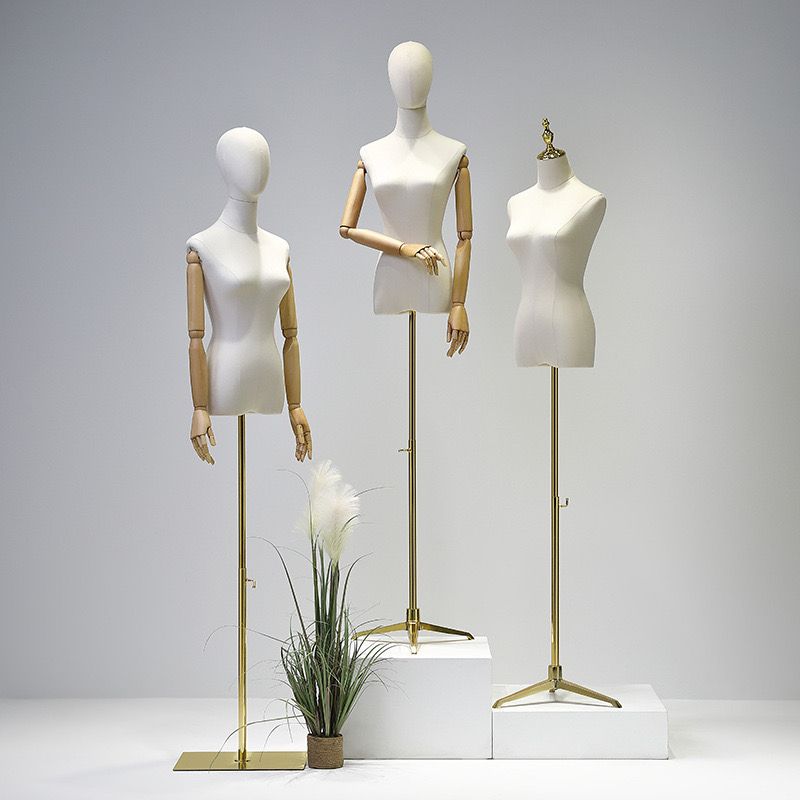 Женский манекен для шоурумов и магазинов одежды с деревянными руками и головой.