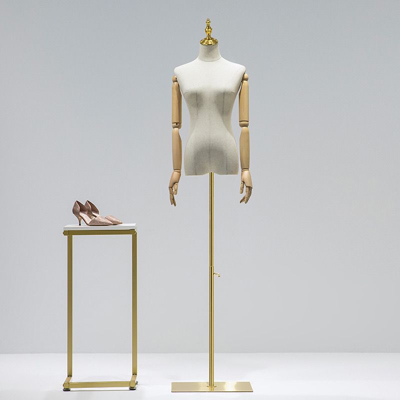 Женский манекен для шоурумов и магазинов одежды с деревянными руками.