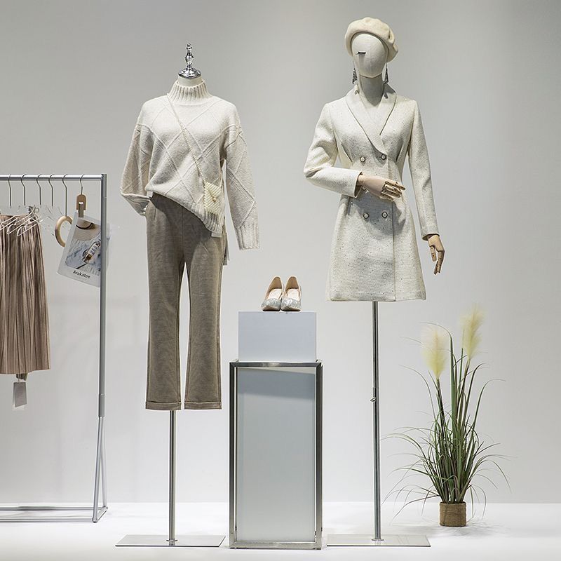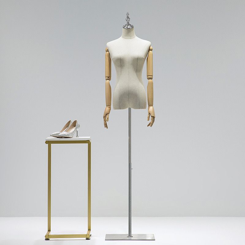Женский манекен для шоурумов и магазинов одежды с деревянными руками.