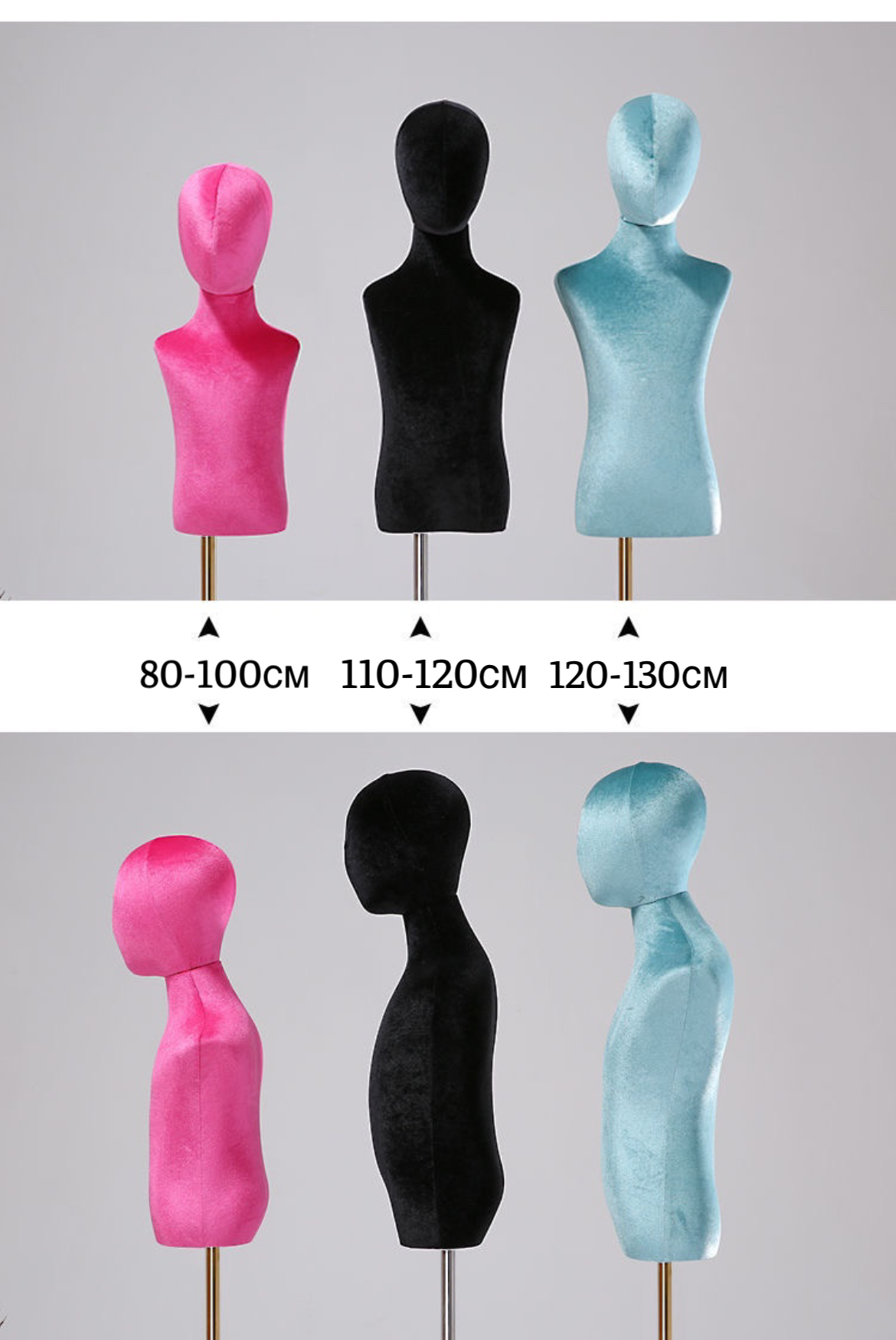 Манекен детский бархат с руками и головой от 80 до 140 см